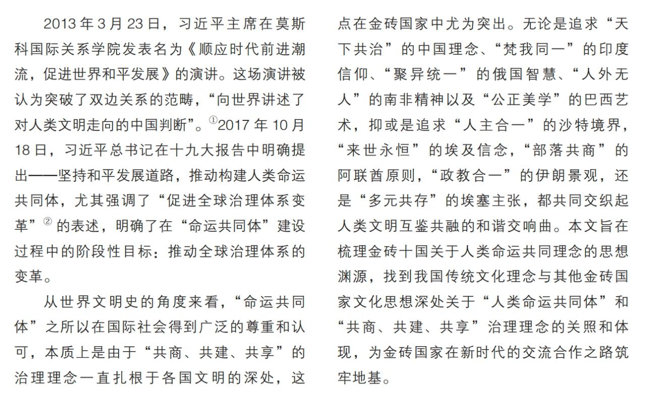 區(qū)域國別與國際傳播研究院戴永紅、張琳、王儉平在《當(dāng)代中國與世界》發(fā)文:金磚國家命運(yùn)共同體的思想淵源